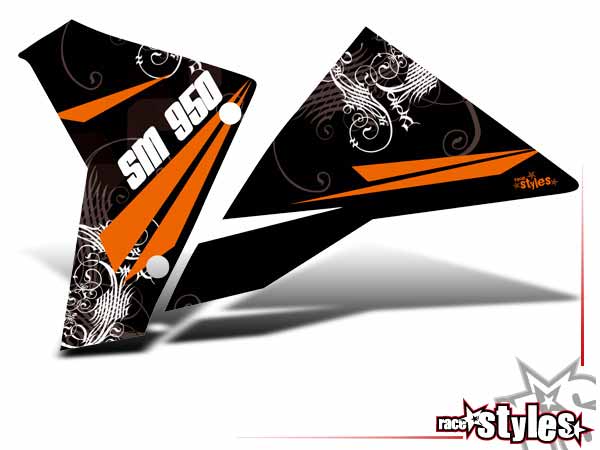 Description: rad cover graphics le./ri. for KTM 950 SuperMoto 2006-2008.