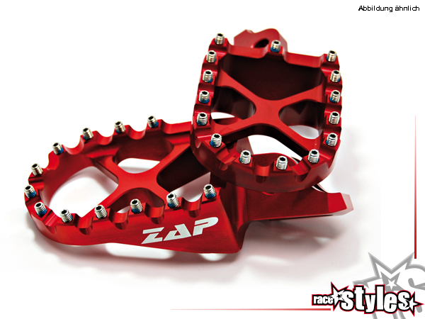 ZAP footpeg kit red, extra wide! Notice: In some cases you have to overwork both footpegs a little bit!