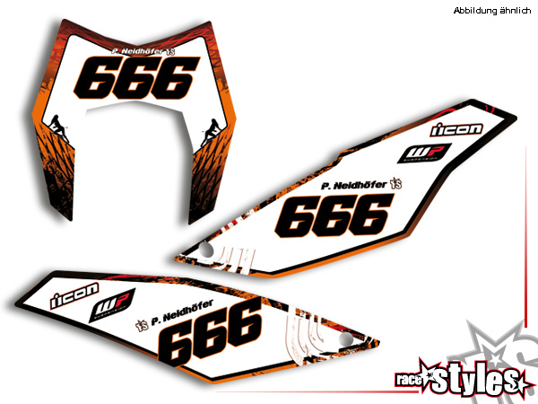 Description: Skull-FMX number plate decal kit for KTM 690 SMC / SMC-R / ENDURO (2008-2017).