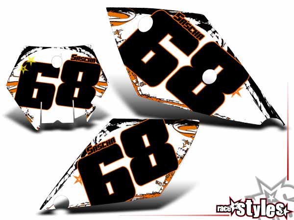 Description: Graffiti-FX number plate decal kit for KTM SX / SX-F (1998-2006) and EXC / EXC-F / SMR (1998-2007). Airbox graphics le./ri. are included.
