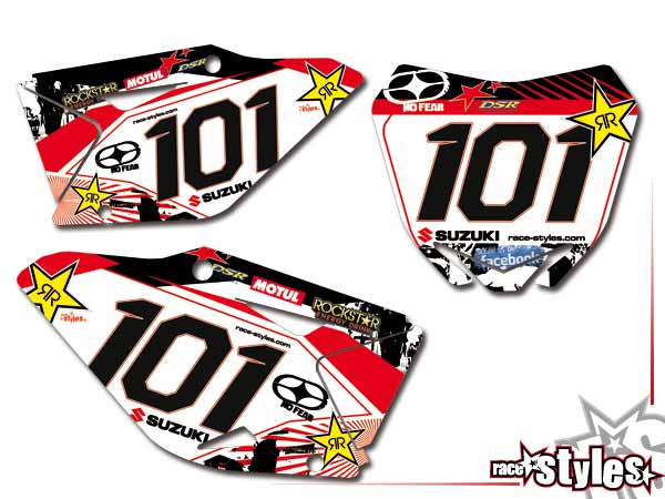Description: number plate decal kit for SUZUKI RM / RMZ (65 85 125 250 450) models 1990-2005, 2006-2021.