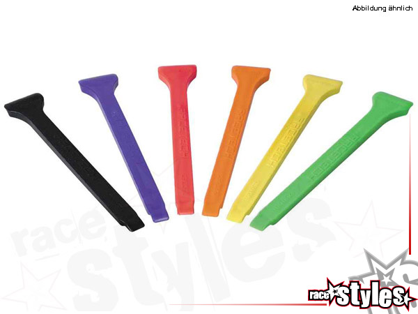 RACETECH mud remover. How many times have you wondered how to remove the mud weighing down your bike before entering a special race, during timing or in a motocross event? many of you will have used unsuitable tools, such as tyre jacks or large screwdrivers, with the risk of scratching part s such as rim s, fork, mudguards or engine casing. racetech ha s introduced mud remover for this purpose, a spatula in rugged polypropylene which can be used at both ends-wide for the mudguards, narrow for all the other parts (PEGS, fork, engine, etc.)