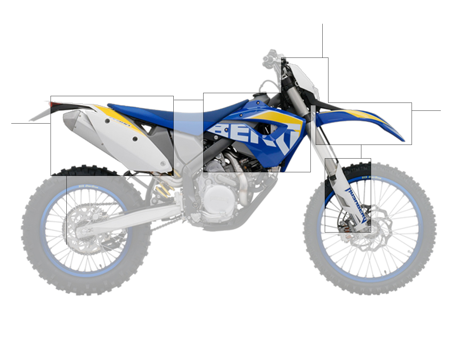 Plastik-Kit für Husaberg FE/TE/FX/FS Modelle 2009-2012. Verfügbar in verschiedenen Farben (schwarz -- sw, blau -- ble, weiß -- w) frei konfigurierbar, ohne Dekor.