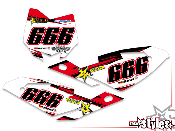 Description: Hot-Lines number plate decal kit for HUSQVARNA SM / SMR / WR / WRE / CR / TC / TE models 2000-2013.