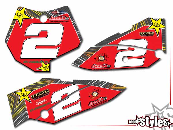 Description: Carbon-LTD. number plate decal kit for KTM SX50 2002-2015 / SX65 2000-2015 / SX85 2000-2012. Airbox graphics le./ri. are included.