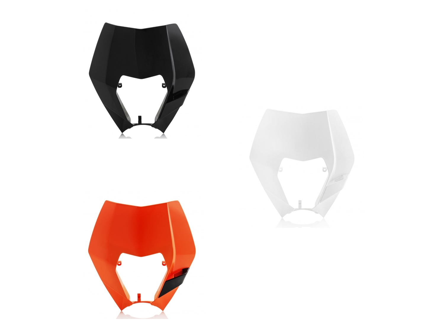 KTM EXC-EXCF mask (2008-2013) without decals, in different colors available. Optional: H4-headlight with plastic disc (clear / open space headlight) for only 100.60 EUR.