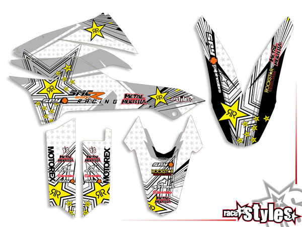 Description: Street-LINE basic graphic-kit for KTM 690 SMC / SMC-R / ENDURO (2008-2017). This kit includes the following decals: fork protectors le./ri., fender front/rear and rad covers le./ri.
