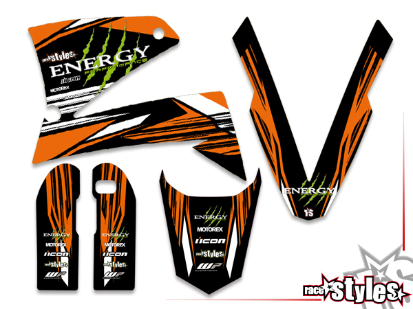 Description: Street-LINE basic graphic-kit for KTM LC4 - SXC / SM / SMC / DUKE 620-660 (1998-2007). This kit includes the following decals: fork protectors le./ri., fender front/rear and rad covers le./ri.