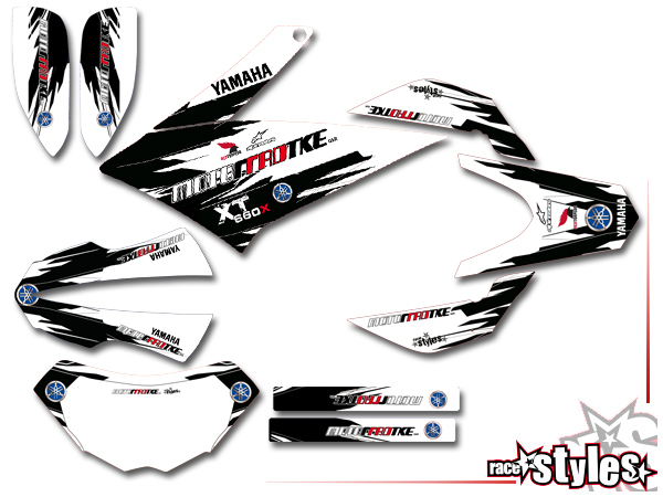 Description: Factory-MX basic graphic-kit for YAMAHA XT660X / R (2004-2014). This kit includes the following decals: fork protectors le./ri., fender front/rear and rad covers le./ri.