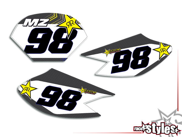 Description: Rockstar-MX number plate decal kit for MZ / MUZ, RT 125 SX / SM, 2000-2008.