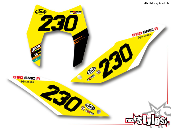 Description: Brandings number plate decal kit for KTM 690 SMC / SMC-R / ENDURO (2008-2017).