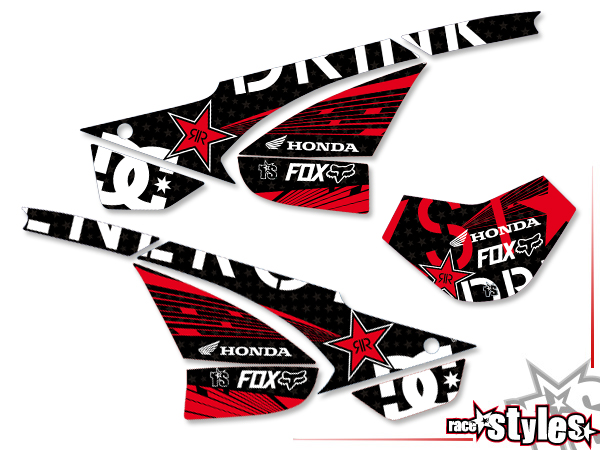 Description: number plate decal kit for HONDA FMX 650, 2005-2007.