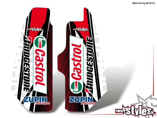 Description: ZUPIN-Edition fork protector graphics le./ri. for HUSQVARNA SM / SMR / WR / WRE / CR / TC / TE models 2000-2013.