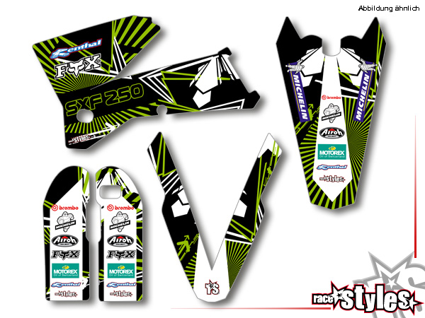 Description: MX-Circuit basic graphic-kit for KTM SX / SX-F (1998-2006) and EXC / EXC-F / SMR (1998-2007). This kit includes the following decals: fork protectors le./ri., fender front/rear and rad covers le./ri.