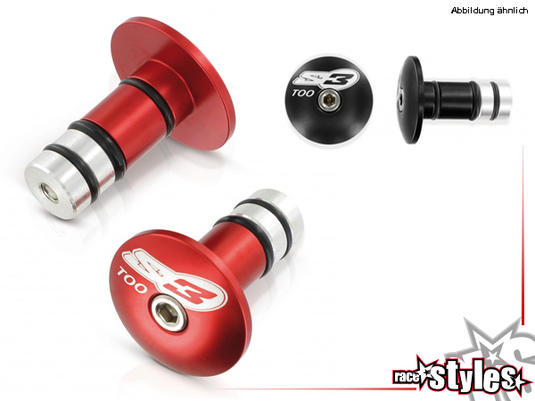S3 handlebar ends. Version: firmly screwed. Features: From S3 patentado fixation system. Safe and precise. Suitable for every modern handlebars. Inside diameter: 14mm. Anodized. Laser engraved S3 logo.