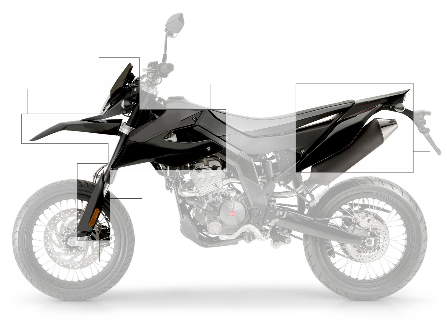 - Rear fender + side panels (black/white)