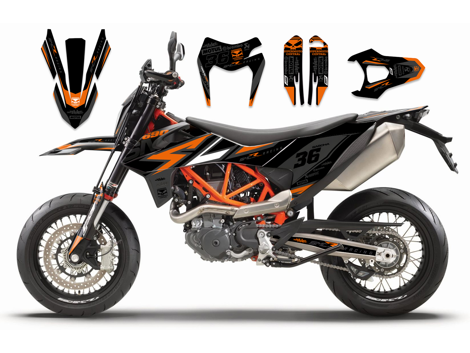 Descripción: kit gráfico completo para modelos KTM SMC 690 R / ENDURO (2019-2024) que consta de horquilla izquierda / derecha, guardabarros delantero / trasero, radiador izquierda / derecha y campos de números básicos en diseño PREMIUM-Edition.