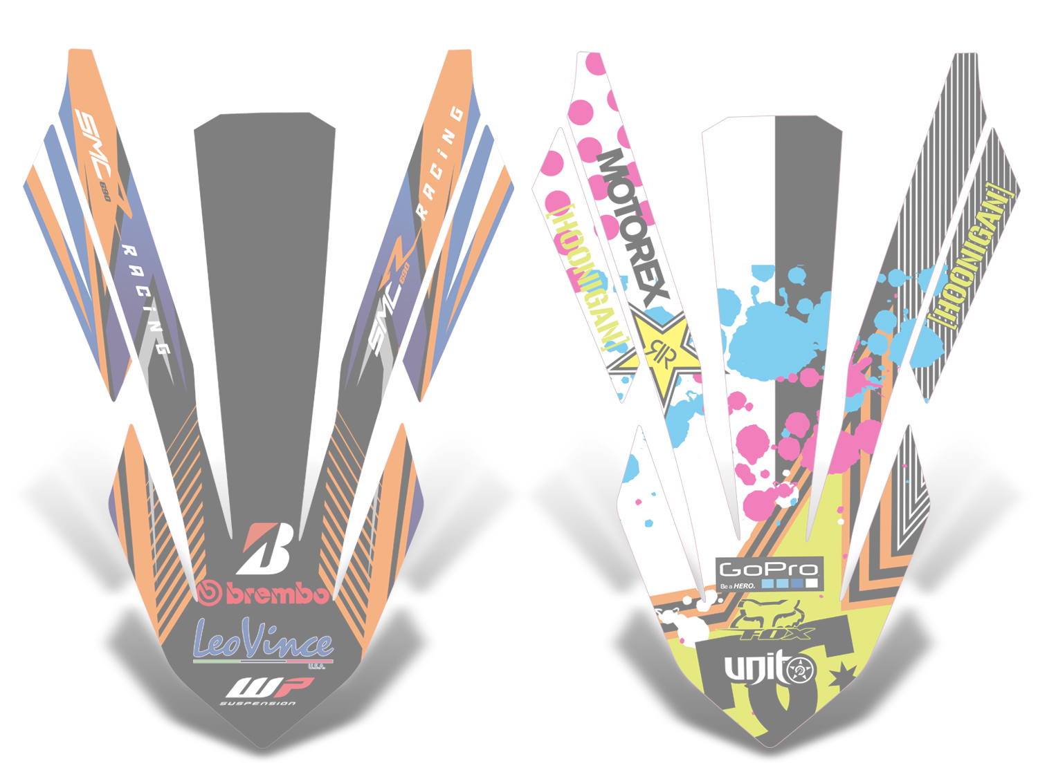 Description: Front fender graphics for KTM SMC 690 R / ENDURO (2019-2024) in a design of your choice. (Please select the corresponding graphic kit number of your desired design!)