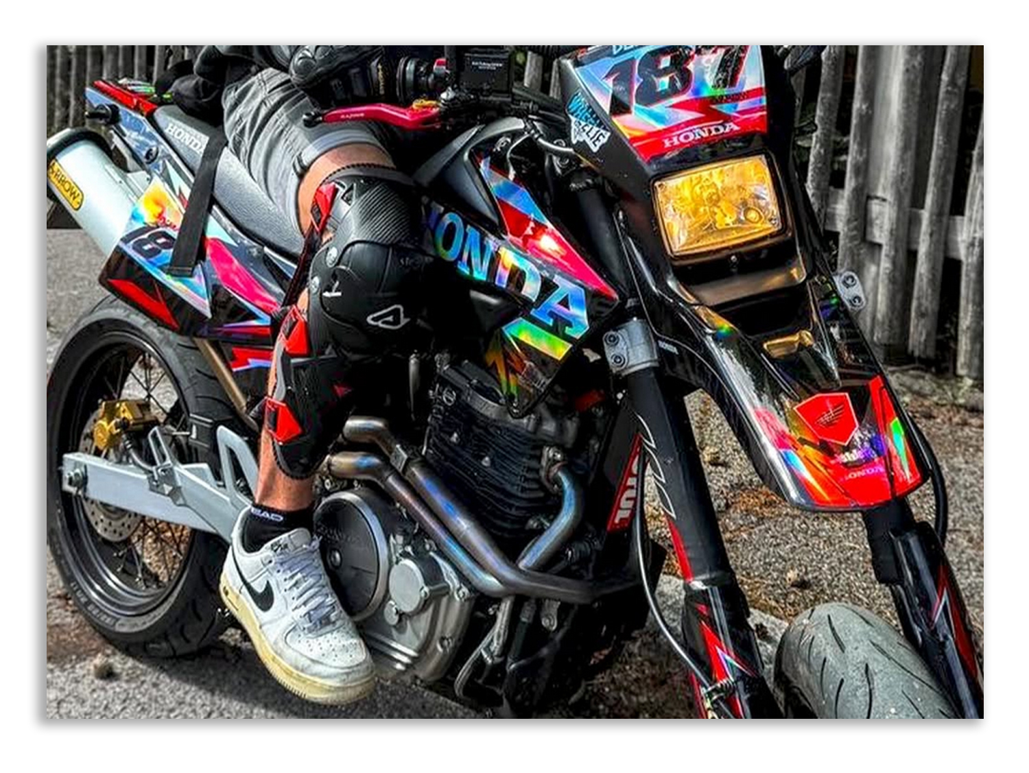In addition to our factory and semi-custom designs, we also produce 100% individually motorcycle graphics - according to your ideas. Special effects can be achieved with chrome, holographics or glitter foil effects. We are excited about your ideas and look forward to get your project! Stand out from the SCENE!
