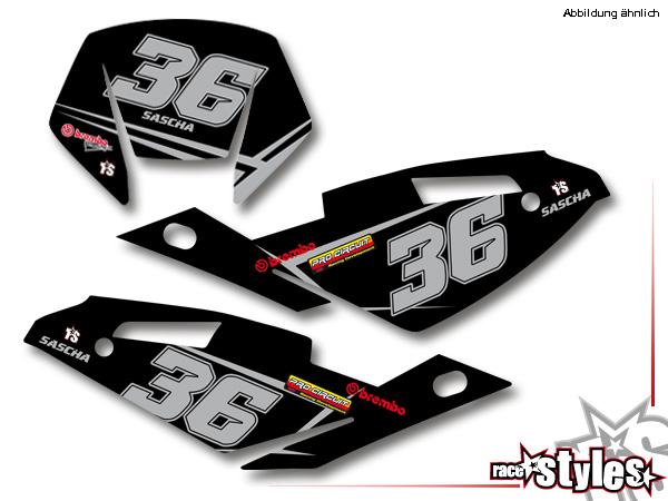 ATTENTION: Toutes les pièces pièces plastique et carbone peuvent être commandées sur notre e-shop avec cette déco ! Tu économises ainsi un collage onéreux et tu obtiens une finition au top.