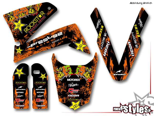 kit déco de base pour KTM LC4 - SXC / SM / SMC / DUKE 620-660 (1998-2007) comprenant bas de fourche gauche/droite, coques avant/arrière et ouïes de radiateur gauche/droite.