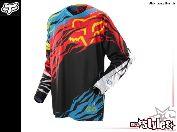 FOX 360 Forzaken Jersey. Hauptkörper aus Polyester mit Mesh Panel im Rückenbereich für verstärkte Luftströmung. Bewegliche, gepolsterte Ellbogen. Außergewöhnliche, sublimierte Grafiken für verblassungsfreies Waschen. Gerippte Bündchen. Sportlicher V-Ausschnitt. Rückenteil verlängert um das Jersey in der Hose zu halten. Material 100% Polyester.