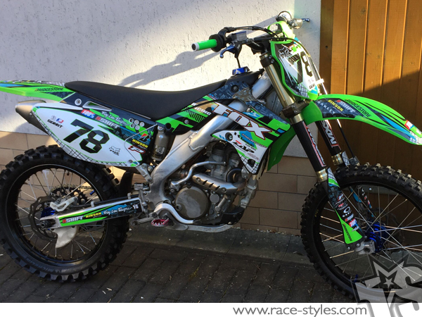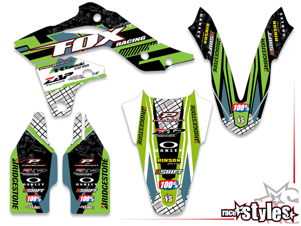 Basic Dekor-Kit für KAWASAKI KX / KXF (65 85 125 250 450) Modelle 1990-2005, 2006-2021 bestehend aus Gabel li./re., Kotflügel vo./hi. und Kühler li./re.