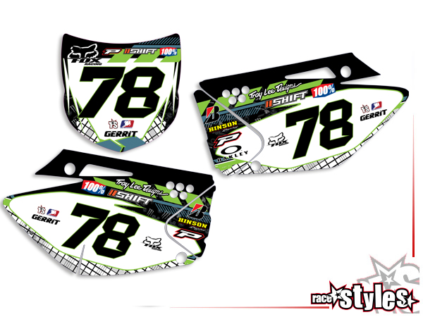 Startnummernfelder Dekor-Kit für KAWASAKI KX / KXF (65 85 125 250 450) Modelle 1990-2005, 2006-2021.
