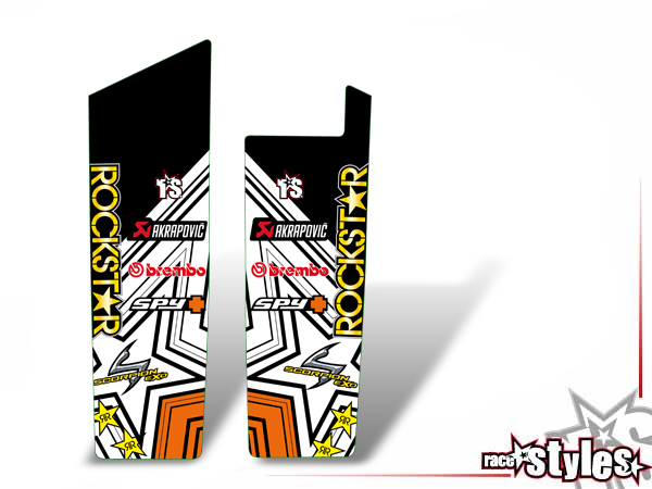 Description: Rockstar-MX fork protector graphics le./ri. for KTM 690 SMC / SMC-R / ENDURO (2008-2017).