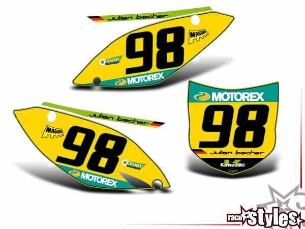 Startnummernfelder Dekor-Kit für KAWASAKI KX / KXF (65 85 125 250 450) Modelle 1990-2005, 2006-2021.