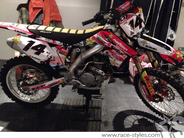 basic graphic-kit for SUZUKI RM / RMZ (65 85 125 250 450) models 1990-2005, 2006-2021. This kit includes the following decals: fork protectors le./ri., fender front/rear and rad covers le./ri.