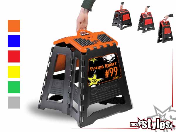 So setzt man sein Motorrad gekonnt in Szene! Gestalte deinen Ständer mit deinem Namen, deiner Nummer, deinen Sponsorenlogos, deinem Fahrerbild. Größe und Form kannst du nach der Bestellung angeben. Im Set sind 2 Aufkleber für deinen Motorradständer enthalten.