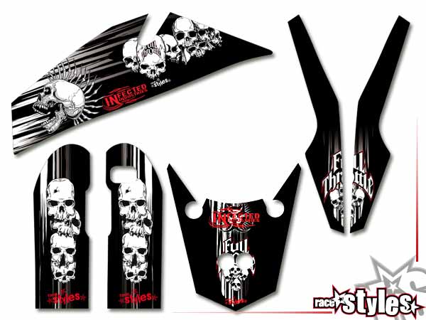 Description: basic graphic-kit for KTM 950 SuperEnduro 2006-2008 and KTM 950 SuperMoto R 2007-2008. This kit includes the following decals: fork protectors le./ri., fender front/rear and rad covers le./ri.