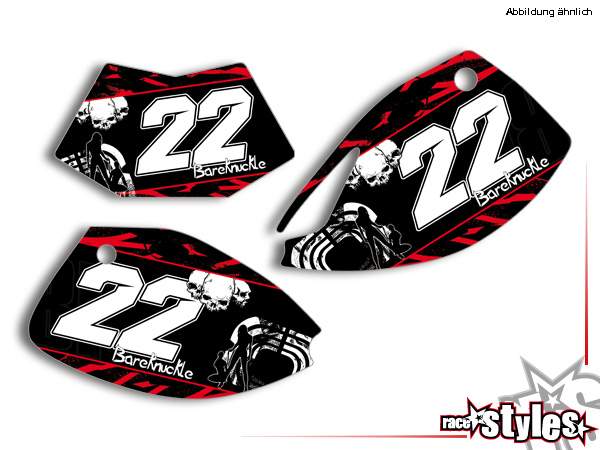 Beschreibung: Skull-FMX Startnummernfelder Dekor-Kit passend für KTM LC4 - SXC / SM / SMC / DUKE 620-660 (1998-2007).