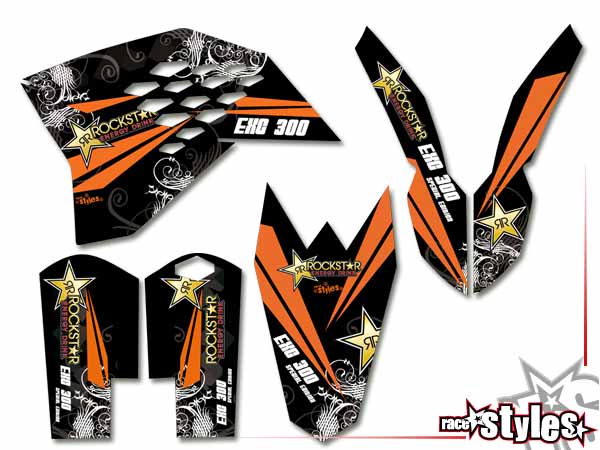 Basic Dekor-Kit passend für KTM SX / SX-F (2007-2010) und EXC / EXC-F / SMR (2008-2011) bestehend aus Gabel li./re., Kotflügel vo./hi. und Kühler li./re.