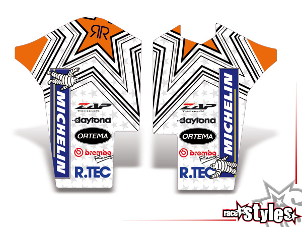 Gabelprotektoren Dekor li./re. passend für KTM SX / SX-F (2011-2012, 2013-2015) und EXC / EXC-F / SMR (2012-2013, 2014-2016).