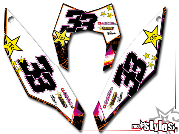 Descripción: Rockstar-MX kit de decores para campos de números básicos para KTM 690 SMC / SMC-R / ENDURO (2008-2017).