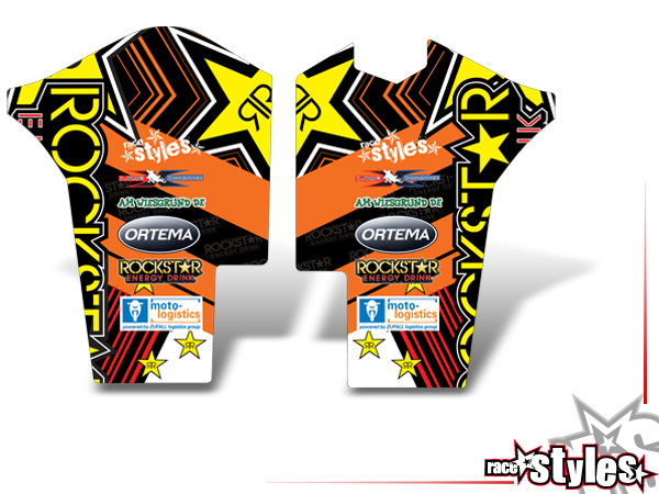 decor para protecciones de horquilla izquierda / derecha para KTM SX / SX-F (2011-2012, 2013-2015) y EXC / EXC-F / SMR (2012-2013, 2014-2016).