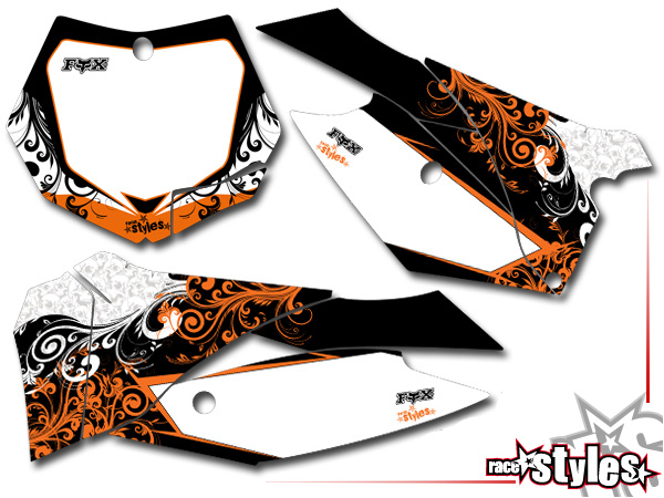 Startnummernfelder Dekor-Kit passend für KTM SX / SX-F (2011-2012, 2013-2015) und EXC / EXC-F / SMR (2012-2013, 2014-2016). inkl. Luftfilterkasten li./re.