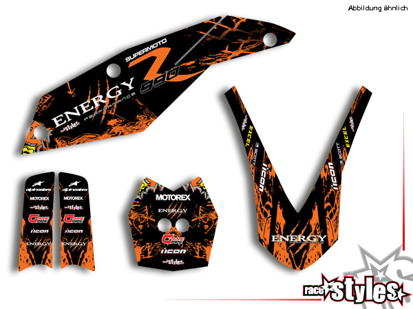 Basic Dekor-Kit passend für KTM Supermoto 990 2009-2013 bestehend aus Gabel li./re., Kotflügel vo./hi. und Kühler li./re.