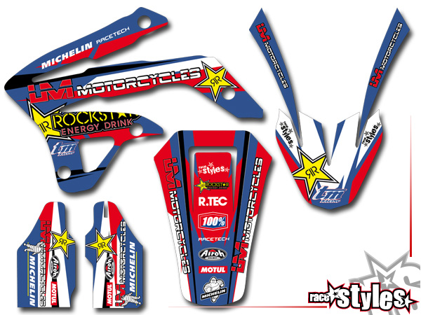 basic graphic-kit for TM EN / MX / SMM / SMR /SMX (85 125 450 530) models 2005-2020. This kit includes the following decals: fork protectors le./ri., fender front/rear and rad covers le./ri.