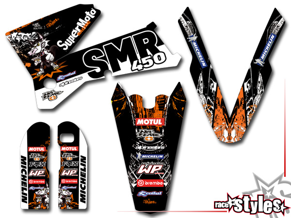 Basic Dekor-Kit passend für KTM SX / SX-F (1998-2006) und EXC / EXC-F / SMR (1998-2007) bestehend aus Gabel li./re., Kotflügel vo./hi. und Kühler li./re.