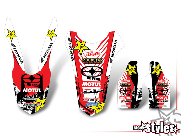 Honda TRIM KIT beinhaltet das abgebildete Dekor bestehend aus: Kotflügel, Gabelprotektoren und Heckkotflügel für HONDA CR / CRF, 50-450, 2000-2020. Qualität: extra DICKE high-gloss US-OFFROADFOLIE. Achtung: Es können keine weiteren Veränderungen vorgenommen werden.