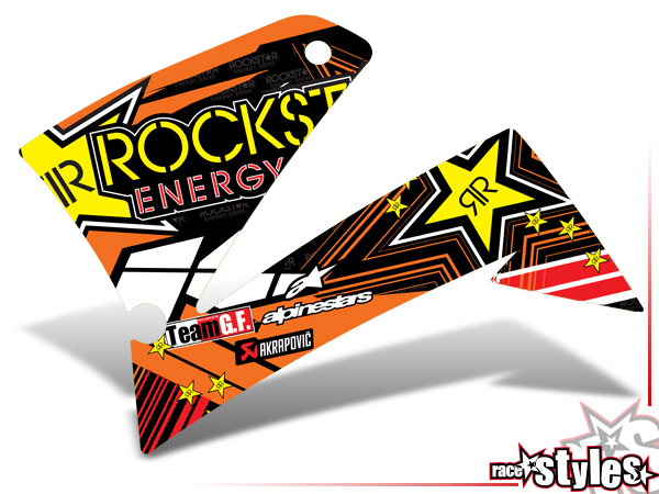 Beschreibung: Rockstar-MX Kühlerspoiler Dekor li./re. passend für KTM LC4 - SXC / SM / SMC / DUKE 620-660 (1998-2007).