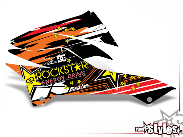 Beschreibung: Rockstar-MX Kühlerspoiler Dekor li./re. passend für KTM 690 SMC / SMC-R / ENDURO (2008-2017).