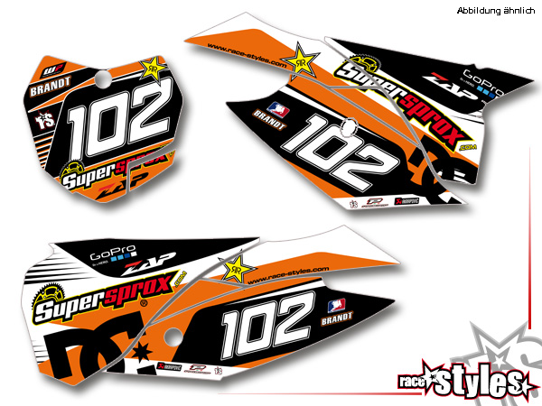 Startnummernfelder Dekor-Kit passend für KTM SX / SX-F (2011-2012, 2013-2015) und EXC / EXC-F / SMR (2012-2013, 2014-2016). inkl. Luftfilterkasten li./re.