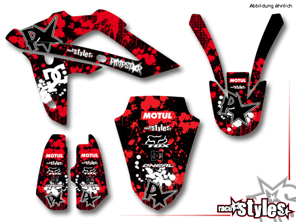 Description: basic graphic-kit for HUSQVARNA SM / SMR / WR / WRE / CR / TC / TE models 2000-2013. This kit includes the following decals: fork protectors le./ri., fender front/rear and rad covers le./ri.