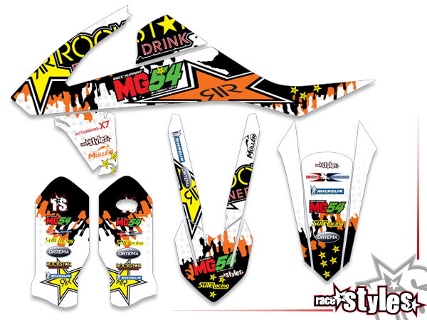 kit de decores básico para KTM SX / SX-F (2016-2018, 2019-2022) y EXC / EXC-F (2017-2019, 2020-2022) que consta de horquilla izquierda / derecha, guardabarros delantero / trasero y radiador izquierda / derecha.