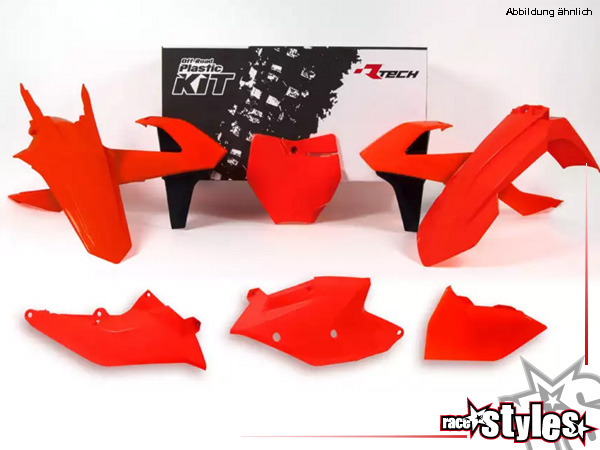 Plastic-Kit NEON ORANGE für diverse KTM Modelle. Der Kit setzt sich wie folgt zusammen:
