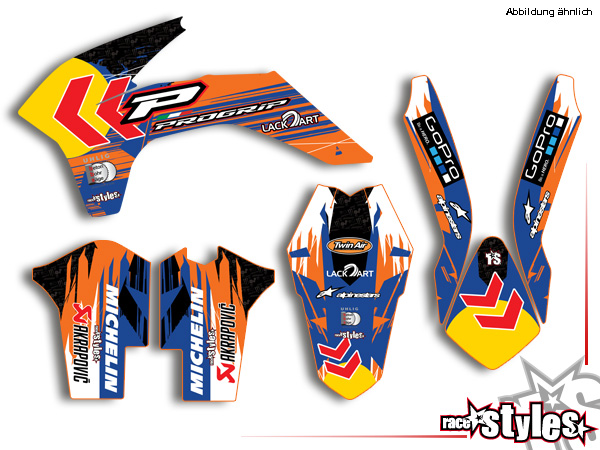 Basic Dekor-Kit passend für KTM SX / SX-F (2011-2012, 2013-2015) und EXC / EXC-F / SMR (2012-2013, 2014-2016) bestehend aus Gabel li./re., Kotflügel vo./hi. und Kühler li./re.